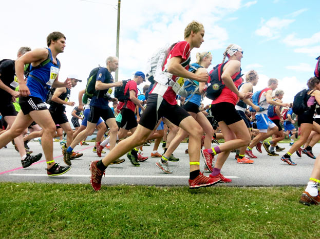 Mosjonsklassen får busstransport til Stølshaugane inkludert i påmeldingsavgifta, og startar sin tur der. Konkurranseløparane kan velje mellom «hovudløpet» med start på Sveen og springe frå 0 moh til toppen på 1209 moh, eller den kortare varianten som har start på Stølshaugane ca 400 moh og mål på toppen.